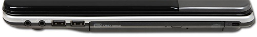 Левая сторона D440 содержит отверстие для подключения источника питания, разъем RJ-45, решетку системы охлаждения, видеовыход VGA, интерфейс HDMI и один USB 2.0 порт. Спереди расположен кардридер и пара индикаторов. Правую сторону ноутбука eMachines D440 занимает оптический привод, аудиоразъемы и два порта USB 2.0, а также Kensington lock.