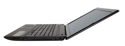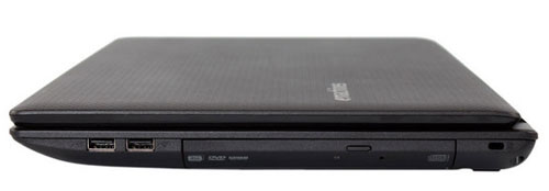 Справа в ноутбуке находятся два порта USB 2.0 для подключения периферийных устройств и встроенный оптический привод DVD-RW. Накопитель может воспроизводить и записывать, как обычные, так и двухслойные диски. Рядом с приводом расположено отверстие Кенсингтонского замка.