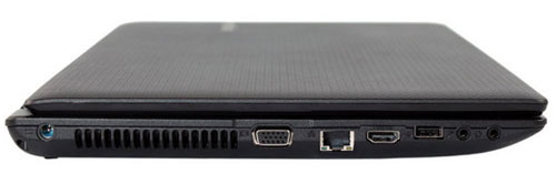 Левая сторона Acer eMachines E642G заполнена намного больше. Здесь находятся такие востребованные интерфейсы, как VGA, через который можно подключить внешний монитор, цифровой порт HDMI и разъем сетевого контроллера RJ-45 со скоростью передачи данных 1 Гбит/с. Кроме этого, нашлось место для еще одного порта USB, гнезда для подзарядки и двух аудиоразъемов для подключения микрофона и наушников.