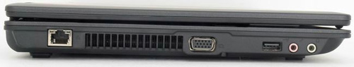 Слева расположены два линейных адаптера, порт USB и разъем сетевой карты. Возле вентиляционной решетки находится видеовыход VGA.