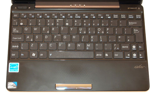 Нетбук Asus Eee PC 1008P оснащается полноценной островной клавиатурой с 82 плоскими кнопками. Она достаточно эргономична, т.к. клавиши нажимаются практически бесшумно, плавно, с коротким ходом и расположены на оптимальном расстоянии. Такое расположение кнопок поможет снизить количество ошибок при быстром наборе текста.