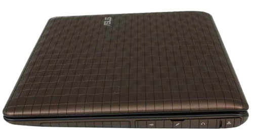 Не менее интересно выглядит данный рисунок на коричневом фоне. Кстати, аналогичная текстура находится и на нижней поверхности. Соответственно, матовый нетбук отлично и свежо выглядит в любом ракурсе. В целом, внешний вид Eee PC 1008P можно назвать довольно нарядным.