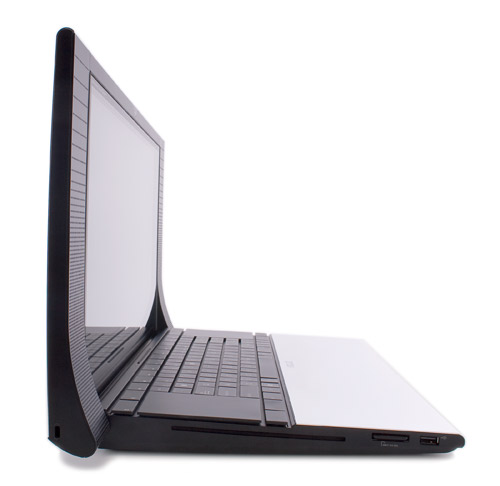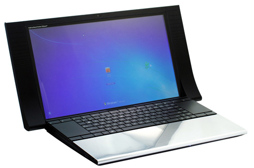 Этот невероятно мощный ноутбук имеет весьма оригинальный дизайн. Так, верхняя крышка по размерам значительно больше основного блока устройства: в выступающих частях размещены динамики. На самом деле, общая идея, которой подчинен дизайн ноутбука, разработанный шеф-дизайнером Bang & Olufsen Дэвидом Льюисом – это новый подход к звуковой системе.