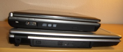 Порты. На левой стороне ноутбука находится firewire, разъем питания, DVD+RW привод.