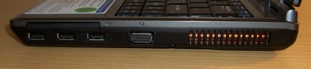 На правой стороне расположился VGA выход, Express Card slot, три USB порта и вентиляционное отверстие. Хочу заметить, USB порты расположены вверх ногами.