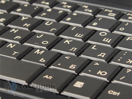 Клавиатура состоит из 104 матовых плоских кнопок. Размер всех клавиш не одинаков. Так, «литературные» кнопки имеют размеры 18х18 мм, функциональные клавиши – 15х13 мм, а нижний ряд – 18х20 мм. Самым маленьким получился стрелочный блок. Настолько маленьким, что это можно записать в недостатки. Кстати, левый Shift тоже маловат. Механические свойства клавиатуры порадовали. Нажимаются они легко, раскладка стандартна, тексты можно набирать вслепую. Клавиатурный поддон под давлением рук не прогибается, что не может не радовать. И русский, и английский алфавиты нанесены белым цветом.