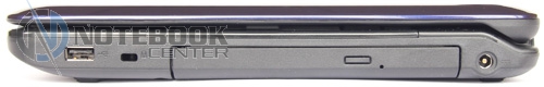 На правой грани имеется еще один порт USB 2.0, отверстие для Kensington Lock, оптический привод DVD Super Multi (TSSTcorp CDDVDW TS-L633B) и разъем для подключения блока питания.
