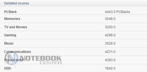 Производительность компьютера зависит не только от процессора. Это взаимодействие CPU, графики, оперативной памяти и жесткого диска. Мы проверяли производительность в приложении PCMark Vantage. Суммарный результат составил 4443 балла. Сколько получили отдельные компоненты, можно посмотреть на скрине.