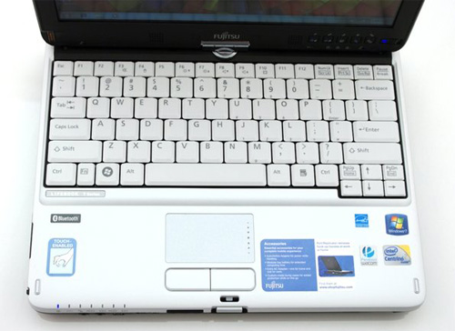 Клавиатура ноутбука-планшета насчитывает 85 клавиш среднего размера. Кнопки устройства ввода нажимаются с небольшим щелчком, но плавно. Правда, из-за прогиба может показаться, что ход у клавиш слишком длинный. Тачпад в Fujitsu LIFEBOOK T4410 самый обычный. Манипулятор выполняет скроллинг и другие элементарные жесты. Работать с сенсорной зоной комфортно, главным образом за счет гладкой матовой поверхности, по которой легко скользят пальцы и хорошо выполняется позиционирование. Технологией множественных прикосновений тачпад не обладает, т.к. производители посчитали, что мультитач есть в сенсорном экране. При желании, сенсорную панель всегда можно отключить.
