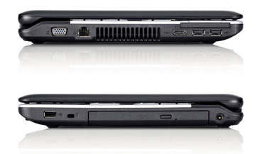 справа – гнездо питания, оптический привод и один USB.
