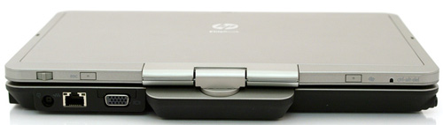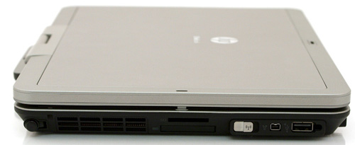 Все четыре грани ноутбука задействованы под порты. Традиционно, наиболее загруженными получились боковые торцы. Слева находится отсек для стилуса, кардридер SD, слот ExpressCard/34, выключатель беспроводной связи, порт Firewire и один порт USB 2.0. Справа находятся клавиши быстрого доступа, разъем для наушников, кардридер SmartCard, два порта USB 2.0, разъем модема, слот замка Kensington.