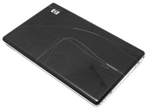 Внешний вид ноутбука HP HDX X18 мог бы быть скромным, если бы не тонкие белые и темные полосы, хаотично расположенные на глянцевой титановой поверхности. В данном случае мы имеем дело с эффектным дизайном под названием « HP Imprint Finish Fluid».