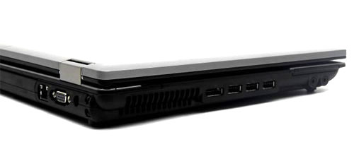 На правой стороне кроме встроенного пишущего оптического привода DVD-RW и кардридера, читающего востребованные форматы карт SD, MS, Pro, MMC и XD, находятся порт Fire Wire, передающий данные со скоростью до 400 Мбит/с, и последовательный COM-порт. Такой порт подойдет, в первую очередь, для подключения специального оборудования. Кроме этих портов справа располагается один интерфейс USB.