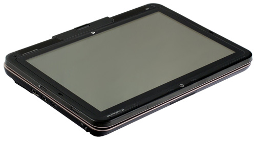 Углы обзора матрицы просто отвратительны, цветопередача ужасна. Пожалуй, это отличительная черта экранов планшетных лэптопов. Из-за плохого равновесия неудобно работать с тачскрином в режиме ноутбука. Нажимая на экран, лэптоп немного отклоняется назад.