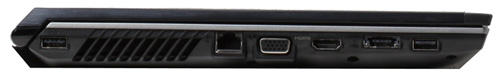Набор портов запросто можно назвать стандартным. Ничего лишнего нет, изобилием разъемов Lenovo IdeaPad V560A1 тоже не похвастается. Задняя грань от портов полностью свободна, на передней разместился только кардридер. Левый торец содержит два порта USB 2.0 (один их них комбинированный с eSATA), разъем Ethernet, видеовыход VGA и порт HDMI. Справа находится линейный выход, микрофонный вход, еще один USB 2.0, оптический привод DVD, Kensington lock и разъем для подключения источника питания. Не стоит забывать и о 1.3 мегапиксельной веб-камере и сканера отпечатка пальцев.