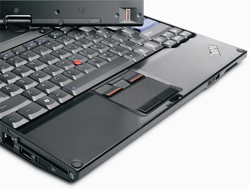 Кроме клавиатуры и стилуса в модели ThinkPad X201 Tablet для ввода предусмотрены мини-джойстик – трекпоинт с двумя клавишами под пробелом и сенсорный манипулятор – тачпад. Относительно сенсорного поля можно сказать, что он достаточно чувствителен для четкого позиционирования курсора и выполнения простых жестов. К работе с трекпоинтом на первых порах надо будет привыкать, зато потом в пользу удобства Вы откажетесь от управления другими средствами и будете использовать только миниатюрный джойстик, как полноценную замену мыши.