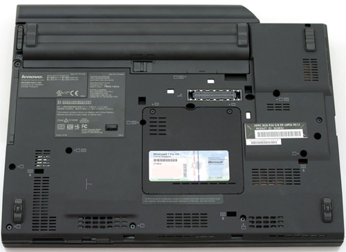 С противоположной стороны ThinkPad X201 Tablet располагаются видеовыход D-Sub, один интерфейс USB и разъем сетевого контроллера RJ-45. Также на левой грани находится универсальный слот Express Card, читающий 34 мм и 54 мм карты памяти, гнездо питания и слот для замка Кенсингтон.