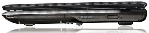 На правой грани ноутбука MSI CX623 располагается только интегрированный оптический привод DVD Super Multi. Такой накопитель отлично справится с воспроизведением и записью дисков различных форматов, не исключая двухслойные.