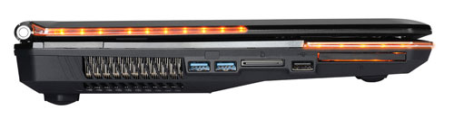 С интерфейсами дело обстоит следующим образом. Все порты ноутбука MSI GT660 занимают не только боковые грани, но и заднюю панель.