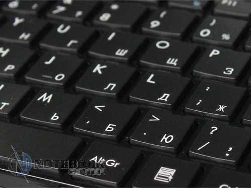 На рабочей поверхности располагается полноценная русифицированная клавиатура со 103 крупными клавишами. Особенностью данной клавиатуры является раздельное расположение клавиш. Таким образом, с помощью островной клавиатуры можно достаточно быстро набирать тексты, не попадая на рядом находящиеся клавиши. В целом, все кнопки имеют четкий ход, и нажатие хорошо ощущается. Несмотря на немного уменьшенные клавиши [PgDown], [PgUp], [Insert], [Delete] и [Esc], эргономичность клавиатуры не пострадала.