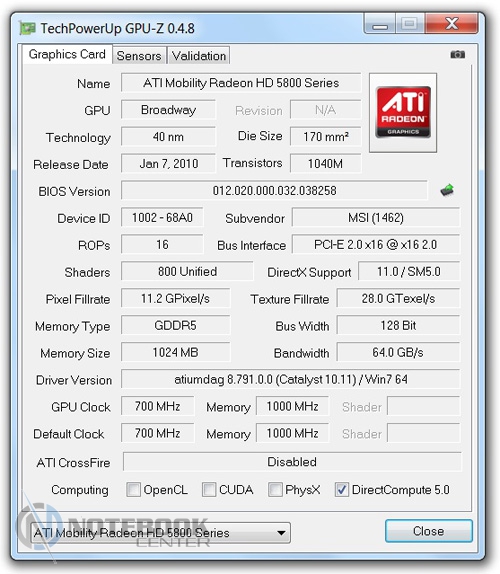 За графику в ноутбуке MSI GX660R отвечает видеоадаптер ATI Mobility Radeon HD 5870 с 1 Гб собственной памяти, построенный по 40-нанометровому технологическому процессу. Эта топовая видеокарта занимает одно из самых лучших мест среди других дискретных контроллеров. Кроме того, на данный момент, высокоскоростная Radeon HD 5870, обеспечивающее молниеносную обработку видеоконтента и гарантирующее неимоверное быстродействие и отличную производительность. Не последнюю роль в этом играет технология повышения частоты Turbo Drive Engine. Таким образом, возможности графической платы позволят играть в требовательные современные «игрушки» на высоких настройках. Даже игры 2010 года пойдут достаточно бегло, без задержек с четким и реалистичным трехмерным изображением.