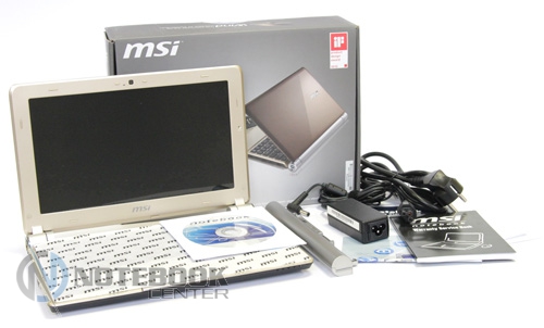 Перед нами находится настолько компактная коробка, что возникает вопрос: Есть ли там нетбук? Открывая, видим, что в маленькой упаковке нашлось место не только для MSI U160 размерами 265х165х19.8 мм, но и для необходимых пользователю документов, среди которых гарантийный талон, гарантийная сервисная книга и проспект с краткой информацией о нетбуке. Помимо этого, комплект поставки включает установочный диск с драйверами, утилитами и руководством для пользователя, литий-ионную аккумуляторную батарею и блок питания мощностью 40Вт (19 В с входным напряжением 1.5 А). В дополнение можно отметить, что на диске предусмотрено программное обеспечение для восстановления системы.