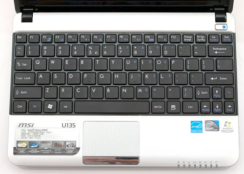 Нетбук Wind U135 оснащён отличной эксклюзивной клавиатурой Chiclet с 83 клавишами. Раскладка клавиатуры островного типа «разместилась» по всей ширине нетбука. Расстояние между клавишами увеличено, поэтому работать за компьютером приятно и комфортно.