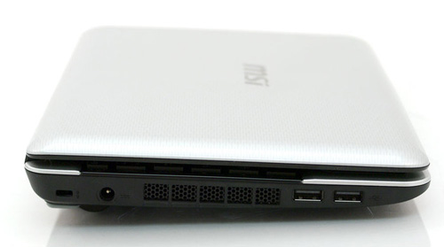 Обращает внимание не совсем удачное качество сборки. Крышка соединяет основание достаточно легко, а защёлки нет. Кстати, полный угол раскрытия нетбука составляет где-то около 120-130 градусов. Такое ограничение имеем благодаря петлям, немного утопленным в корпус. Модель MSI Wind U135 выпускается в различных цветовых решениях: серебристом, классическом чёрном, тёмно-синем и красном.