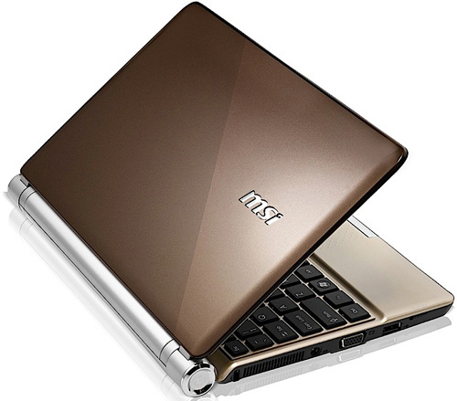 ОБЗОР НЕТБУКА MSI WIND U160Тонкий корпус, небольшая масса, оригинальный инновационный дизайн – это то, что привлекает внимание к нетбуку MSI Wind U160 с первых минут. В «миникомпьютере» установлена 3-секционная литий-ионная батарея, которую можно заменить 6-секционной. Время работы от 6-ячеечного аккумулятора поражает – около 15 часов. Скорее всего, такой период работы частично достигается по причине действия технологии ECO, при которой варьируются режимы от экономичного до производительного "Turbo battery". Прекрасный модный дизайн подчёркивает изящество и элегантность нетбука. Перламутровое покрытие отображает глубину и насыщенность цвета. Превосходное состояние компьютера дополнительно подчёркивается эксклюзивным покрытием Color Film Print. Верхняя часть Wind U160 выполнена в коричневом цвете с использованием фирменного светящегося логотипа, а рабочая поверхность нетбука – бледно-золотистая (есть вариант угольно-чёрного цвета).