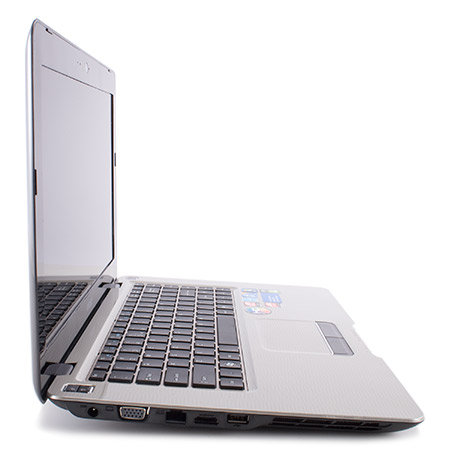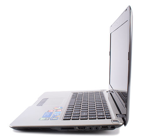 На противоположном торце ноутбука помимо 15-контактного видеовыхода VGA и цифрового интерфейса HDMI, можно увидеть разъем сетевого контроллера и гнездо питания. Кстати, на левой грани нашлось место даже для вентиляционной решетки и еще одного порта USB 2.0.