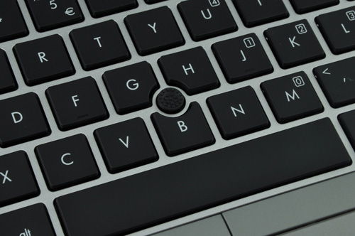 Первое, что бросается в глаза – это отсутствие цифровой панели и наличие трекпоинта. Из-за довольно компактных размеров, лэптоп не удалось оснастить блоком NumPad. Островная клавиатура состоит из черных прорезиненных кнопок. Как уже отмечалось выше, для защиты нанесенных на клавиатуру символов используется прозрачный слой HP DuraKey, который, к тому же, предотвращает скольжение пальцев по кнопкам.