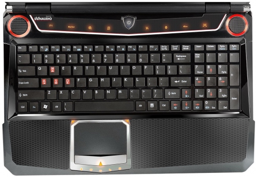 Для истинного геймера устройства ввода информации не менее важны, чем сама графическая производительность системы. Еще бы, ведь это «руки» игромана. Клавиатура островного типа имеет отличные механические свойства, нажимается она четко, мягко и бесшумно. Претензий к ней возникнуть не должно. Красным цветом выделены кнопки-стрелки и «игровые» клавиши [A], [W], [S] и [D]. Нашлось также место стрелочному блоку.