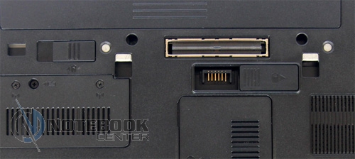 Кстати, для увеличения автономности может использоваться и 12-секционный аккумулятор (HP AT486AA) сверхвысокой емкости (95 Втч). Он подсоединяется через специальный разъем на днище. Также возможно подобное подключение внешней 8-секционной батареи большой емкости HP AJ359AA (59 Втч). Такой аккумулятор целесообразно использовать на совещании или длительной конференции, где нет возможности подзарядиться от сети.
