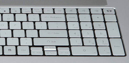 Все кнопки клавиатуры имеют крупные размеры, за исключением стрелочного блока. «Стрелки» заметно прижаты и при нажатии можно легко попасть на соседние клавиши. К работе кнопок претензий не было бы, если б они нажимались четко и беззвучно и находились на оптимальном расстоянии друг от друга. Маркировка клавиш также оставляет желать лучшего. Символы латинских и русских букв нанесены не совсем разборчиво.