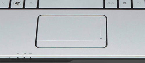 Тачпад располагается не по центру площадки для запястий. Он заметно смещен влево. Сенсорная площадка имеет четкие границы и во время управления курсором пальцы за ее пределы не выскакивают. Достоинством тачпада является поддержка технологии множественных прикосновений, с помощью которой можно удалять и приближать изображения, прокручивать страницы, поворачивать изображения.