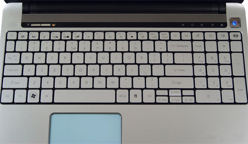 Ноутбук получил типичную для Acer-овских ноутбуков клавиатуру. Именно такие устройства ввода можно увидеть в лэптопах линеек Aspire или Timeline. Клавиши большие, плоские, имеют прямоугольную форму. Кнопки выкрашены в серебристый цвет, они имеют четкую точку срабатыванию, нажимаются немного туговато. Нашлось также место для цифровой панели. Для тех, кто часто набирает тексты, такая клавиатура должна быть «по нраву».