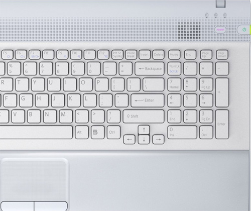 Отличительной чертой ноутбуков Sony VAIO является клавиатура островного типа. Работать на ней очень удобно. Под каждую кнопку имеется своя ячейка, находятся эти ячейки на расстоянии трех миллиметров друг от друга, поэтому количество ошибок при наборе текстов сводится к минимуму. Полноразмерные клавиши Sony VAIO VPC-EF4E1R имеют отличные механические свойства, нажимаются они четко и бесшумно, ход их длинный, имеется фиксированный момент срабатывания. Минус в том, что подложка клавиатуры (как и сами кнопки, впрочем), белая. На ней будут оставаться отпечатки пальцев и пыль.