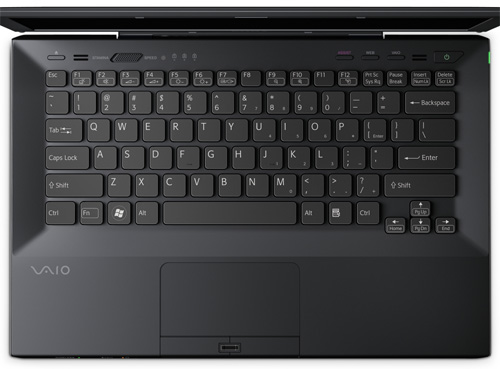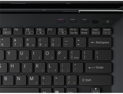 Над основным блоком клавиш расположились три фирменные кнопки (VAIO, ASSIST, WEB), а также клавиши, отвечающие за оптический привод и переключение между встроенной и дискретной видеокартой. Там же находится датчик освещения.