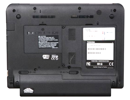 Корпус ноутбука Toshiba NB255 изготовлен из пластика и имеет превосходный цвет под названием «черный оникс». Неординарную внешность ноутбуку придает интересный текстурный узор. Он заметно украшает и одновременно оживляет скромную матовую поверхность. Формы нетбука традиционны для таких устройств. Они обтекаемые, практически не скошенные, углы закруглены.