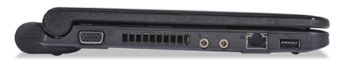 На левой стороне Toshiba Mini NB255 кроме двух аудиоразъемов и сетевого порта RJ-45 есть интерфейс USB 2.0. Стоит добавить, что один из портов USB поддерживает технологию Sleep & Charge, которая позволяет заряжать мобильный телефон, даже когда ноутбук полностью выключен.