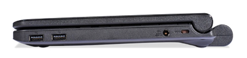 На правой стороне мини-ноутбука располагаются два интерфейса USB 2.0, находящихся ближе к переднему краю. В конце правого торца имеется отверстие Кенсингтонского замка и гнездо для подзарядки.