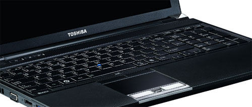 Клавиатура в ноутбуке полноразмерная. Она растянулась по всей ширине рабочей области TECRA R850 и состоит из 102 клавиш, размещенных по принципу мозаики. Квадратная форма кнопок и их крупные размеры позволят комфортно работать во время набора текста. Правда, расстояния между клавишами, как такового, нет. Все клавиши настолько близко расположены друг к другу, что, вероятнее всего, ошибочных нажатий соседних кнопок не избежишь. Также для быстрой печати будет не совсем удобен стрелочный блок, поскольку кнопки, входящие в его состав, сильно прижаты.
