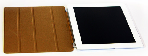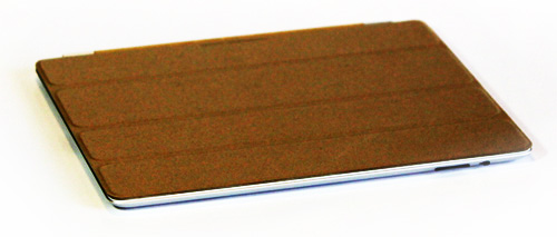 По сути, это и все, что можно сказать о дизайне. В качестве чехла служит аксессуар Smart Cover. Стоит такой «ковер» 39-69 долларов. Он способен прикрывать только одну сторону планшета: либо лицевую, либо тыльную. Данная обложка может быть как подставкой, так и защитным чехлом. Изготавливается Smart Cover из полиуретана или кожи, состоит из четырех пластин, уложенных параллельно друг другу. С одного бока этого аксессуара находится своеобразное металлическое крепление, благодаря которому Smart Cover крепится на ребре устройства. Это крепление выполнено в виде магнитного шарнира. Эти магниты, кстати, настолько сильны, что iPad можно держать даже за чехол. Однако, во избежание казусов, этого лучше не делать. Если этот защитный слой накинуть на лицевую сторону, экран отключается - в рамке планшета строены специальные датчики, реагирующие на «обложку».