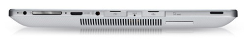 На передней стороне можно заметить глазок веб-камеры и одну единственную аппаратную кнопку. Для стилуса предусмотрен специальный отсек. К тому же, на боковых гранях устройства разместились довольно большие вентиляционные решетки. Еще бы, такая начинка требует хорошего охлаждения.