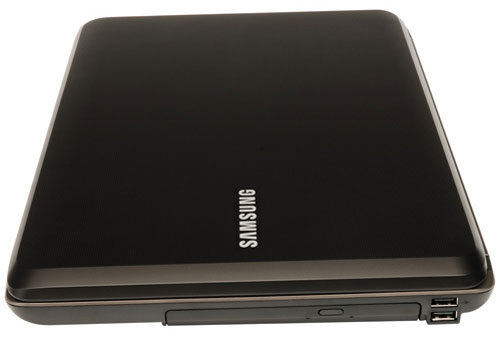 Правая часть ноутбука Samsung E452E более скромная. Здесь есть только два горизонтальных порта USB, расположенных друг над другом и встроенный оптический привод DVD-RW Super Multi Dual Layer. С таким накопителем можно записывать и воспроизводить различные форматы дисков, в том числе и двухслойные.