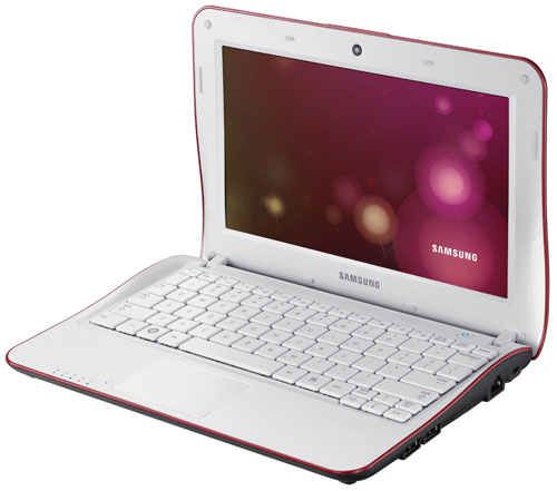 Рассматривая нетбук, не перестаешь удивляться ходу мысли оформителей. Внутренняя и внешняя области Samsung NF110 контрастно отделяются друг от друга тонкой полоской темно-красного цвета, левый и правый торец нетбука выполнены в цвете мокрого асфальта.