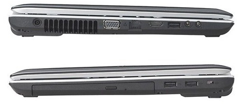 Ноутбук оснащен оптическим приводом Super Multi Dual Layer, с помощью которого можно записывать и читать диски разных форматов. Имеется также кардридер. На гранях равномерно разместились 3 порта USB 2.0 (в том числе с возможностью подзарядки), видеоразъемы VGA (D-Sub), HDMI, вход микрофонный, выход аудио/наушники. Благодаря Samsung AllShare можно в считанные секунды переместить видео, картинки, музыку с других устройств Samsung благодаря протоколу домашней беспроводной сети DLNA.