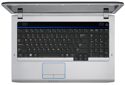 Классический строгий ноутбук Samsung R730 выглядит таковым из-за большого количества прямых линий и округлённых углов.
