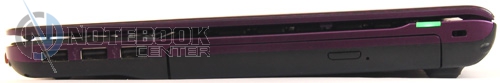Перейдем к рассмотрению портов на правой стороне. Основная часть правого торца занята встроенным оптическим накопителем Matshita DVD SuperMulti. Такой привод отлично справится с воспроизведением и записью обычных и двухслойных дисков. Нельзя будет «работать» только с дисками формата Blue-ray. Также справа находятся три интерфейса USB. Все они горизонтальные и расположены на оптимальном расстоянии друг от друга. Таким образом, при одновременном подключении нескольких устройств шнуры сильно мешать не будут.