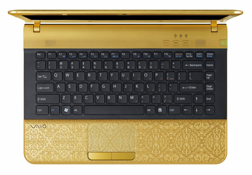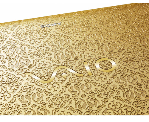 Лучше один раз увидеть ноутбук Sony VAIO VPC-EA3Z1R, чем сто раз про него услышать. Это дизайнерское совершенство Вы запомните непременно. И действительно, потрясающая поверхность поражает великолепием текстурного рисунка, выполненного способом тиснения. Оригинально выглядит на матовой подложке глянцевый орнамент под названием Mystic Arabesque Gold, сочетающий растительные элементы с геометрическими формами. Основного фона при различных углах обзора практически не видно, т.к. внешняя поверхность закрыта постоянно чередующимися причудливыми узорами.